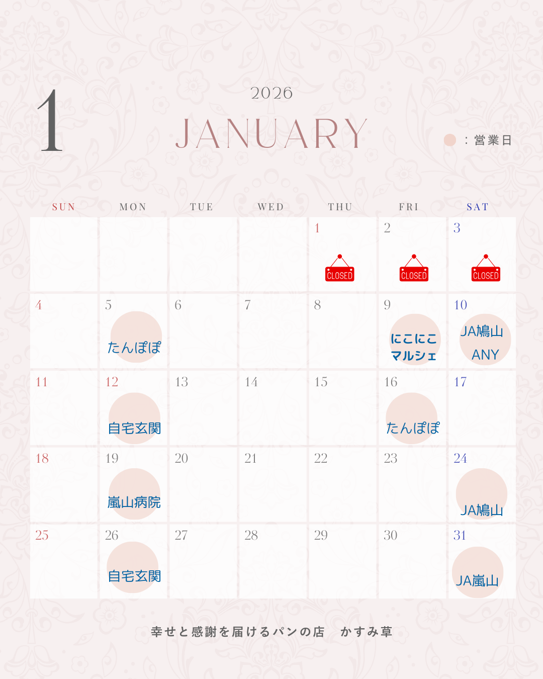 店舗営業日:営業日・イベント出店カレンダーをご参照ください!